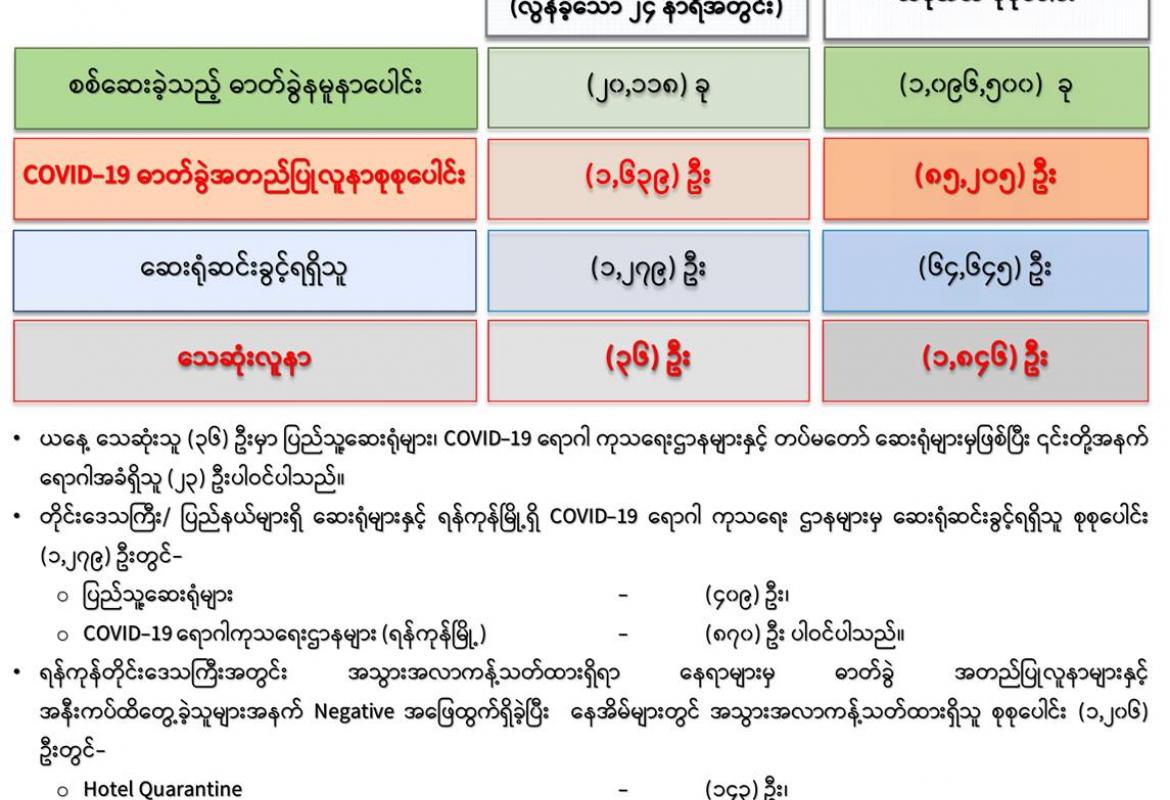 COVID-19 အတည်ပြုလူနာသစ် ၁,၃၃၀ ဦးတွေ့ရှိ