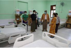 စစ်ကိုင်းတိုင်းဒေသကြီး ဝန်ကြီးချုပ် ဒေါက်တာမြင့်နိုင်နှင့် ဌာနဆိုင်ရာတာဝန်ရှိသူများသည် ယနေ့ မွန်းလွဲ ၁ နာရီခွဲက ရွှေဘိုမြို့ ခုတင်(၂၀၀)ဆံ့ ပြည်သူ့ဆေးရုံကြီး၌ COVID-19 ရောဂါ ကာကွယ်၊ ထိန်းချုပ်၊ ကုသရေးအတွက် ထပ်မံဝယ်ယူပြင်ဆင် ဆောင်ရွက်ထားရှိမှု အခြေအနေအား ကြည့်ရှုစစ်ဆေးခဲ့သည်။
