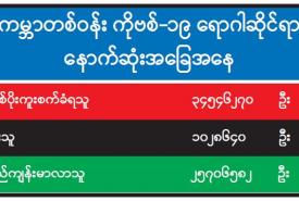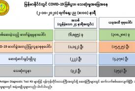 ယနေ့တွင် ကိုဗစ်-၁၉ ဓာတ်ခွဲအတည်ပြု လူနာသစ် (၁,၁၄၂)ဦးတွေ့ရှိ