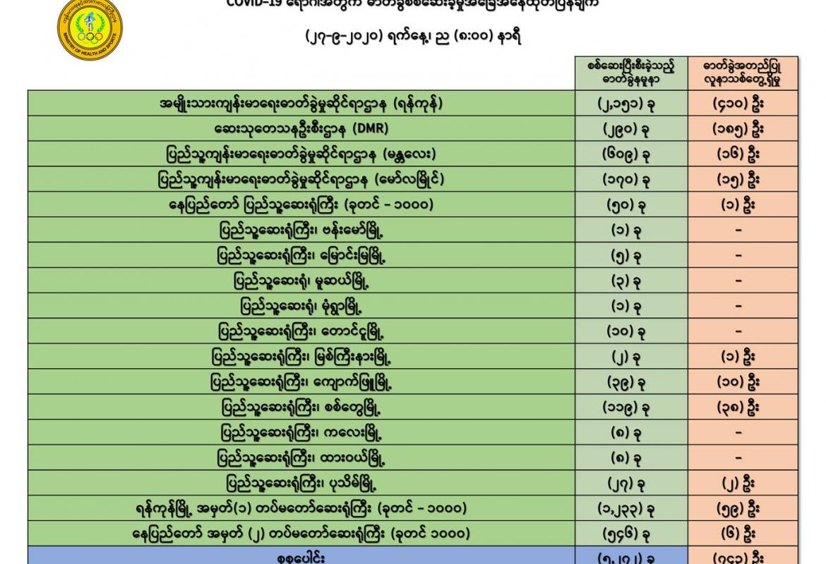 (၂၅-၉-၂၀၂၀) ရက်နေ့၊ ည (၈:၀၀)နာရီမှ (၂၆-၉-၂၀၂၀) ရက်နေ့၊ ည (၈:၀၀)နာရီအတွင်း ဓာတ်ခွဲနမူနာ စုစုပေါင်း (၅,၈၁၆) ခုအား စစ်ဆေးပြီးစီးခဲ့ရာ