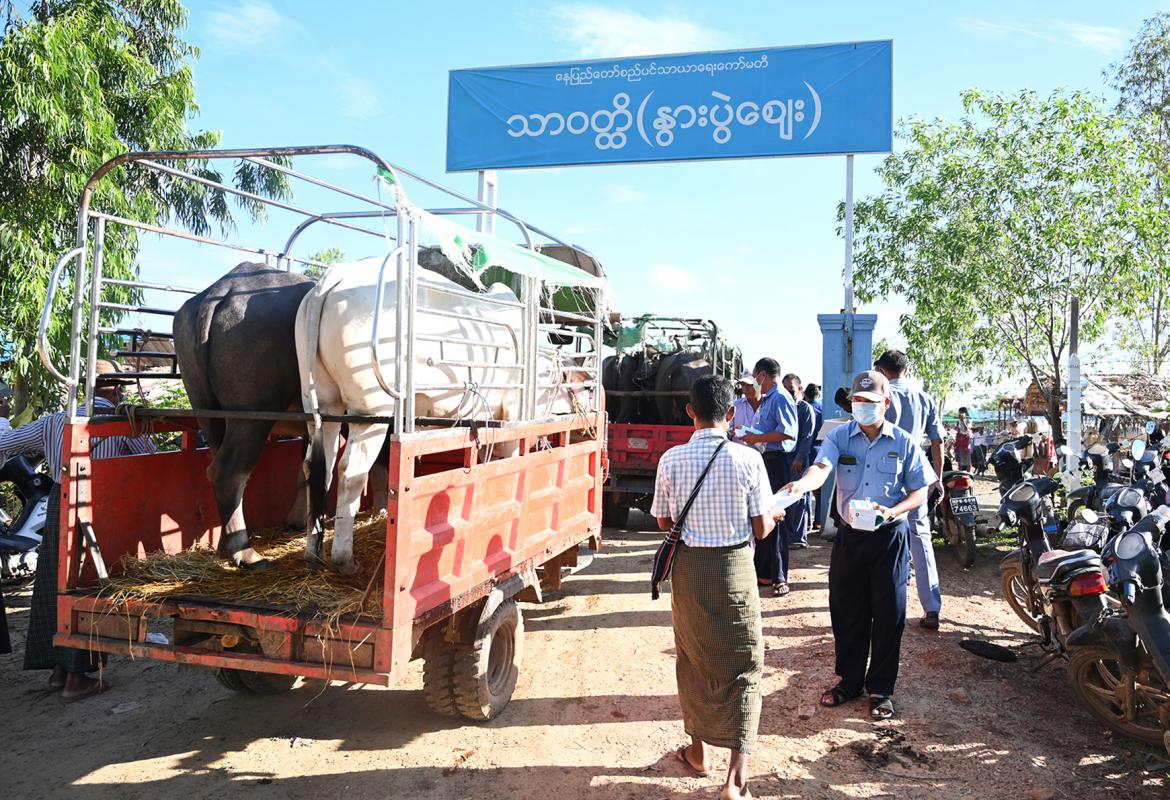 လယ်ဝေးမြို့နယ်၊ သာဝတ္ထိနွားပွဲဈေးတွင် နှာခေါင်းစည်း (Mask) များ အခမဲ့ပေးဝေခြင်းနှင့် အသိပညာပေးခြင်းများ ဆောင်ရွက်