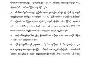 SARS-CoV-2 Variant Omicron (အိုမီခရွန်) ရောဂါပိုး ထပ်မံတွေ့ရှိရမှုနှင့်စပ်လျဉ်း၍ သတင်းထုတ်ပြန်ခြင်း