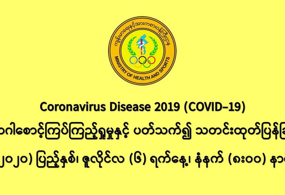 COVID-19 ရောဂါစောင့်ကြပ်ကြည့်ရှုမှုနှင့်ပတ်သက်၍ သတင်းထုတ်ပြန်ခြင်း (၄-၇-၂၀၂၀) ရက်နေ့၊ ည (၈:၀၀)နာရီ