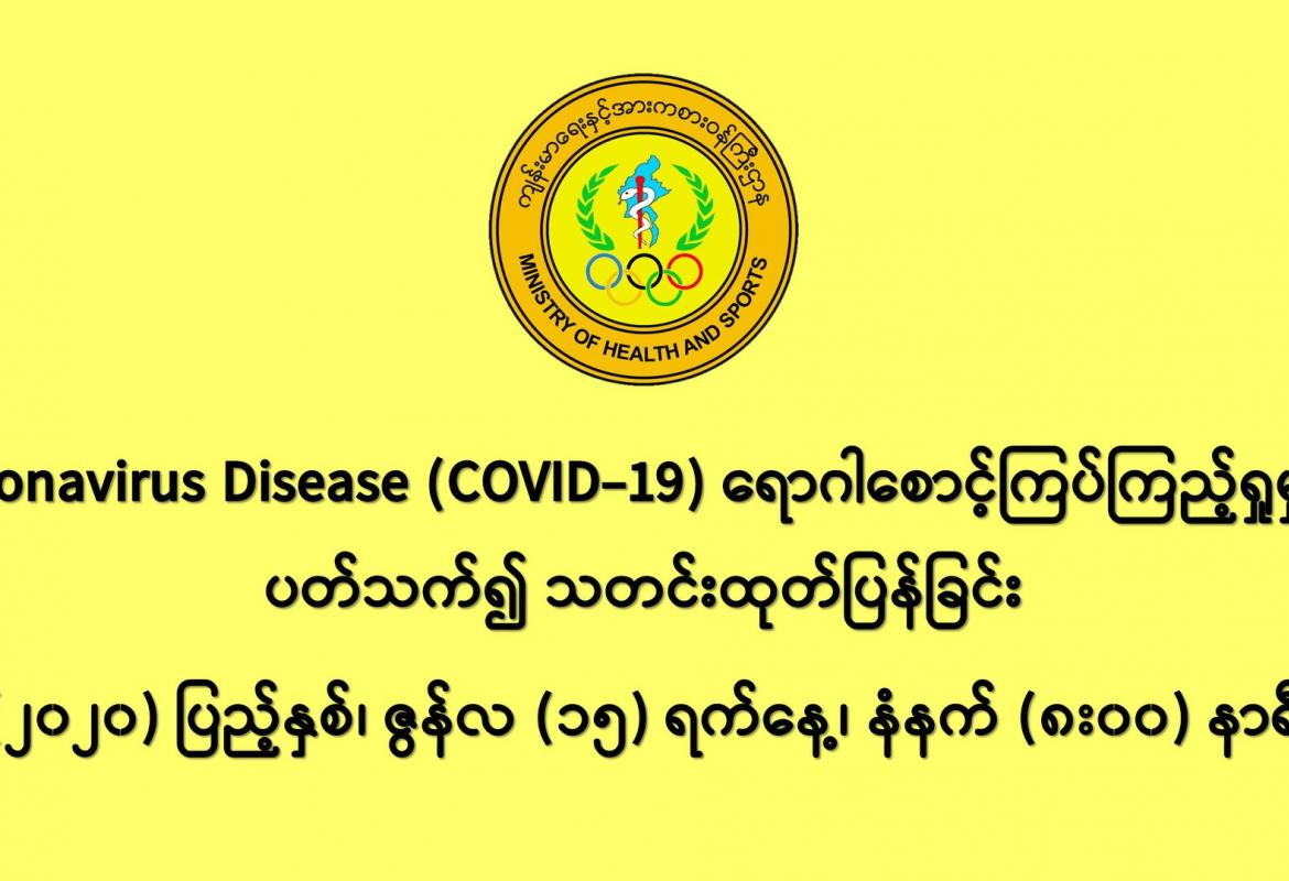COVID-19 ရောဂါစောင့်ကြပ်ကြည့်ရှုမှုနှင့်ပတ်သက်၍ သတင်းထုတ်ပြန်ခြင်း (၁၄-၆-၂၀၂၀) ရက်နေ့၊ နံနက် (၈:၀၀)နာရီ