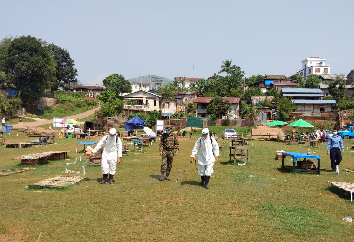နမ္မတူမြို့နယ်ရှိ ယာယီပျံကျဈေး၌ ကိုဗစ်-၁၉ ရောဂါကာကွယ် ထိန်းချုပ်ရေး ပိုးသတ်ဆေးဖျန်း