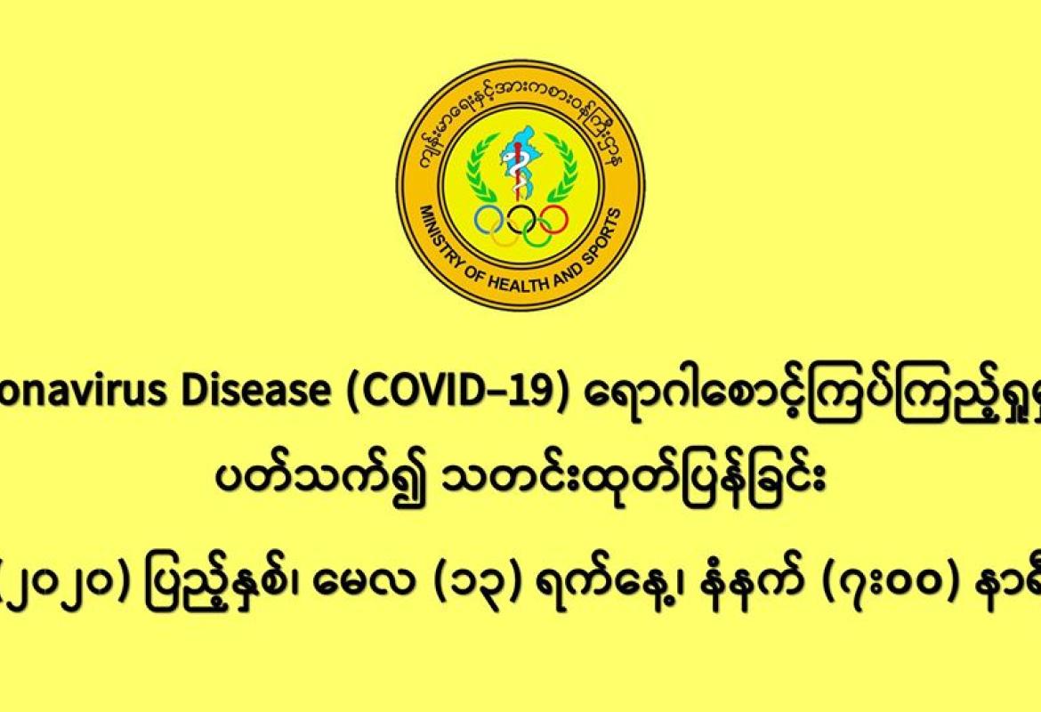 COVID-19 ရောဂါစောင့်ကြပ်ကြည့်ရှုမှုနှင့်ပတ်သက်၍ သတင်းထုတ်ပြန်ခြင်း (၁၂-၅-၂၀၂၀) ရက်နေ့၊ ည (၈:၀၀)နာရီ