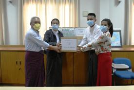 အင်းစိန်မြို့နယ်၌ ကိုဗစ်-၁၉ ရောဂါကာကွယ်ရေးအတွက် PPE ဝတ်စုံများနှင့် လိုအပ်သည်များ အသုံးပြုရန်အတွက် ပစ္စည်းများ လာရောက်လှူဒါန်း