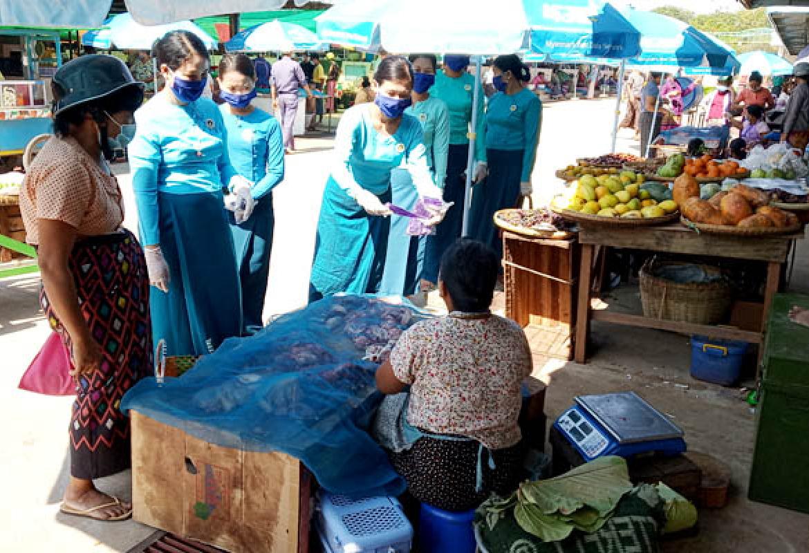 ကျောက်ပန်းတောင်းမြို့နယ် မိခင်နှင့်ကလေးစောင့်ရှောက်မှု ကြီးကြပ်ရေးအသင်းနှင့် အမျိုးသမီးရေးရာအဖွဲ့တို့မှ ကူးစက်ရောဂါကာကွယ်ရေးအတွက် တမ္ပဝတီဈေးသစ်ကြီးတွင် Mask Campaign ပြုလုပ်