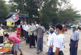 ပဲခူးမြို့ပေါ် ယာယီဖွင့်လှစ်ထားသော ဈေးများတွင် ကိုဗစ်-၁၉ ရောဂါ အသိပညာပေးခြင်းများပြုလုပ်