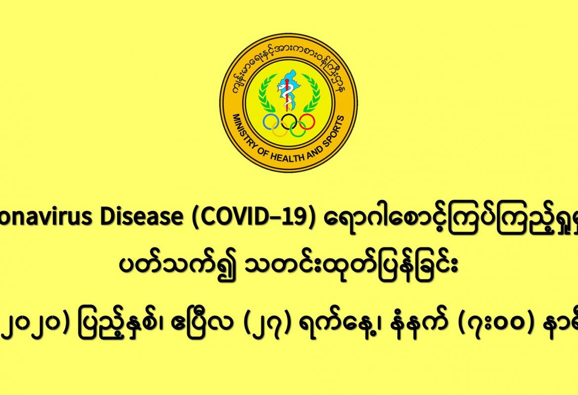 မြန်မာနိုင်ငံအတွင်း ကိုရိုနာဗိုင်းရပ်စ် စောင့်ကြပ်ကြည့်ရှုမှု အခြေအနေ ၂၆-၄-၂၀၂၀ ရက် ည (၈) နာရီ