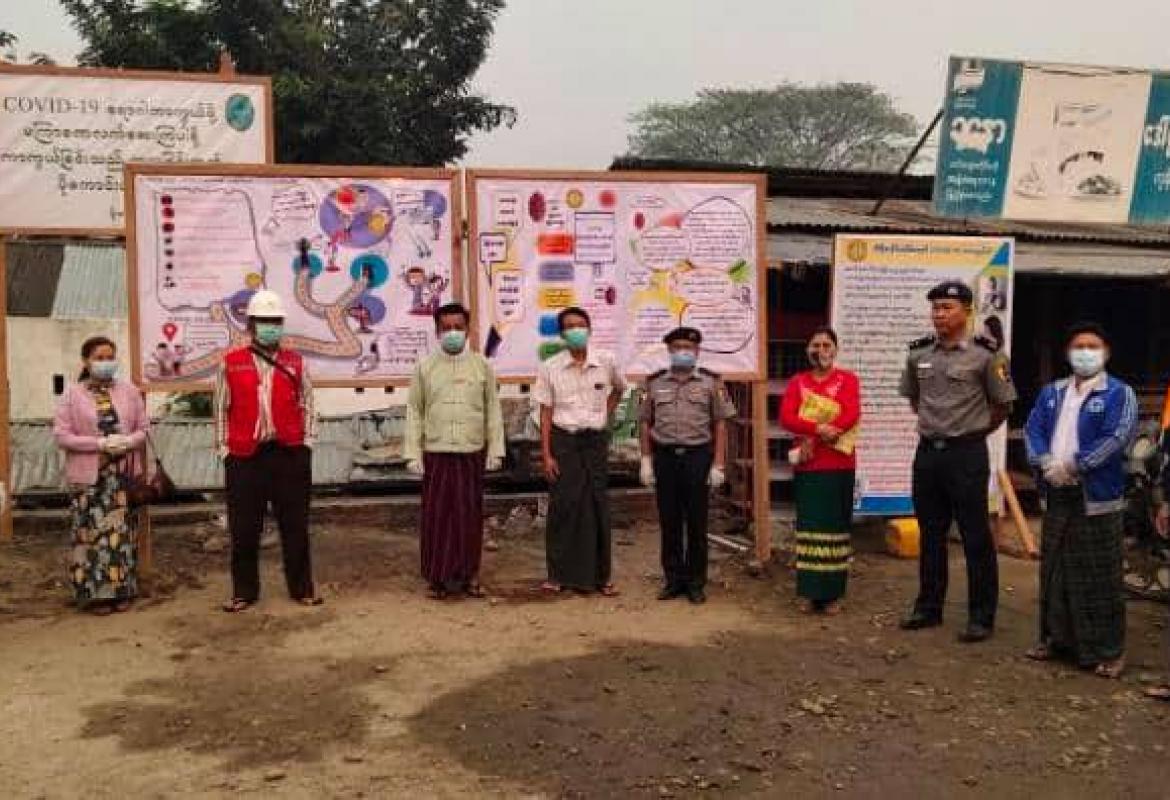 ကချင်ပြည်နယ်၊ ဗန်းမော်ခရိုင်၊ မိုးမောက်မြို့နယ်အတွင်း ကိုဗစ်-၁၉ ကြိုတင်ကာကွယ်ရေး လုပ်ငန်းများကိုအရှိန်အဟုန်မြင့်ဆောင်ရွက်လျက်ရှိရာ မြို့မဈေးအရှေ့တွင် မြို့နယ်အုပ်ချုပ်ရေးမှူး ဦးခိုင်မင်းကိုနှင့် ကျန်းမာရေးဌာန၊ ဌာနဆိုင်ရာများပူးပေါင်း၍ ယနေ့ဧပြီ ၁ ရက်နေ့ နံနက် ၇ နာရီတွင် အသိပညာပေး ဆိုင်းဘုတ်စိုက်ထူပွဲ ကျင်းပရာ လွယ်ဂျယ်(မ.က.ဖ)ဌာနမှ လက်ထောက် ညွှန်ကြားရေးမှူး ဦးဟိန်းကျော်အောင်က မိုးမောက်မြို့နယ်အတွက် PPE ဝတ်စုံ(၅) စုံ အပူချိန်တိုင်းကိရိယာ(၂)ခု ပေးအပ်လှူဒါန်းခဲ့သော အဆိုပါပစ္စည်းများကို မြို့နယ်အုပ်ချုပ်ရေးမှူး ဦးခိုင်မင်းကိုက မြို့နယ်ဆရာဝန်ကြီး ဒေါက်တာတင်မေသင်းထံသို့ ပေးအပ်လှူဒါန်းခဲ့ကြောင်း သိရှိရသည်။