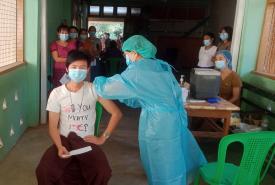 အောင်လံမြို့နယ်၌ စက်ရုံ၊ အလုပ်ရုံ၊ အလုပ်ဌာနများမှ အာမခံ အလုပ်သမားများကို ကိုဗစ်-၁၉ ရောဂါကာကွယ်ဆေး ပထမအကြိမ်ထိုးနှံ