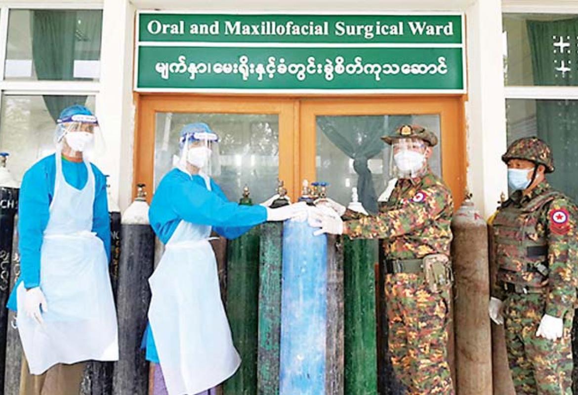 ကိုဗစ် - ၁၉ ရောဂါ ကာကွယ်၊ ထိန်းချုပ်၊ ကုသရေး အထောက်အကူပြု ပစ္စည်းများနှင့် အောက်ဆီဂျင်အိုးများ ပေးအပ်လှူဒါန်းလျက်ရှိ