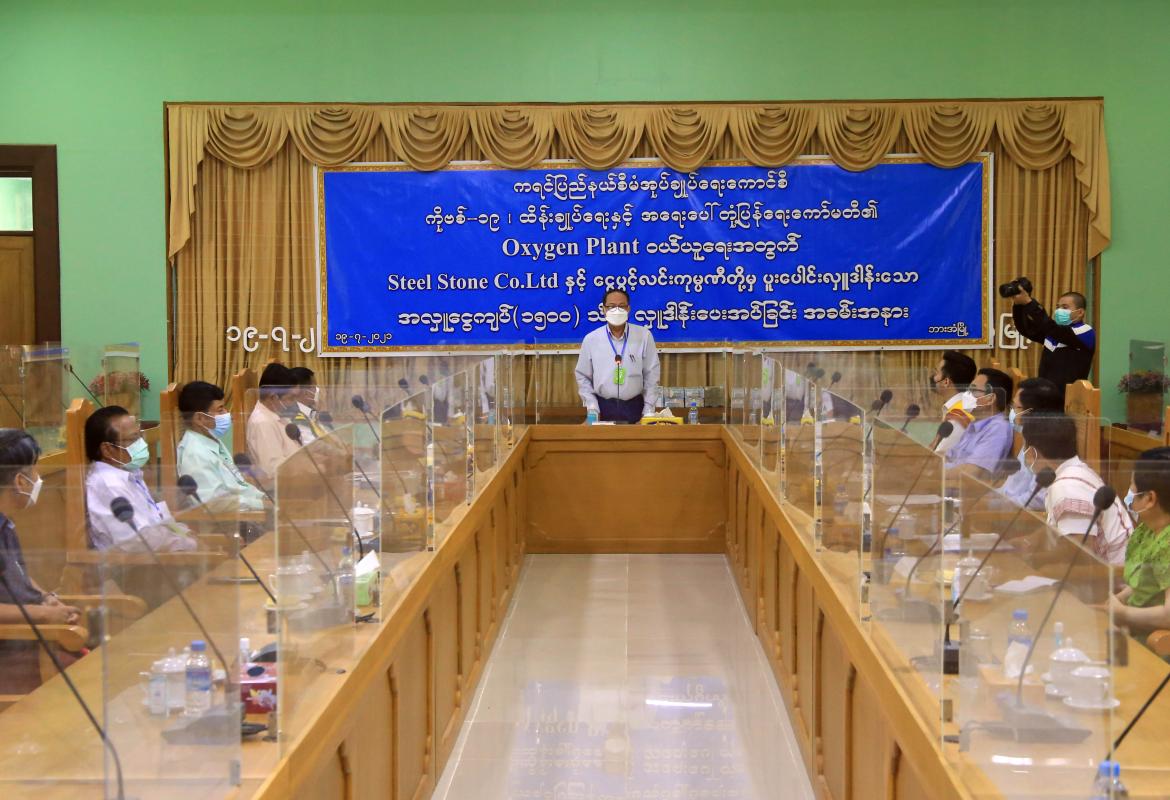 ကရင်ပြည်နယ်စီမံအုပ်ချုပ်ရေးကောင်စီ ကိုဗစ်-၁၉ ထိန်းချုပ်ရေးနှင့်အရေးပေါ်တုံ့ပြန်ရေးကော်မတီ၏ အောက်ဆီဂျင်စက် ဝယ်ယူရေးအလှူငွေကျပ်သိန်း (၁၅၀၀) လာရောက်လှူဒါန်း