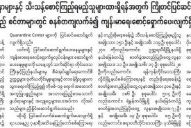 ကိုဗစ်-၁၉ ရောဂါအတည်ပြုလူနာများနှင့် သီးသန့်စောင့်ကြည့်ရမည့်သူများထားရှိရန်အတွက် ကြိုတင်ပြင်ဆင်မှုများ ဆက်လက်ဆောင်ရွက်၊ ပြီးစီးသည့် စင်တာများတွင် စနစ်တကျလက်ခံ၍ ကျန်းမာရေးစောင့်ရှောက်ပေးလျက်ရှိ