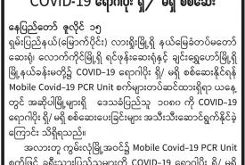 Mobile Covid -19 PCR Unit စက်များဖြင့် COVID-19 ရောဂါပိုးရှိ/ မရှိစစ်ဆေး