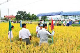 ကျိုင်းတုံမြို့နယ်၌ မိုးစပါး(အောင်နိုင်တိုး)မျိုးသန့်ပွားစိုက်ခင်း စံကွက်ရိတ်သိမ်း
