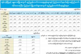 ရန်ကုန်မြို့နှင့် မန္တလေးမြို့အတွက် ရည်ညွှန်းလက်ကားဈေးနှုန်းများနှင့် ပြည်ထောင်စုနယ်မြေ နေပြည်တော်၊ တိုင်းဒေသကြီး/ ပြည်နယ် မြို့တော်များအတွက် ရည်ညွှန်းလက်လီဈေးနှုန်းများ