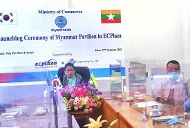 ကိုဗစ်-၁၉ ကပ်ရောဂါကြောင့် ကမ္ဘာ့နိုင်ငံများ၏ ဈေးကွက်ရှာဖွေမြှင့်တင်မှုနှင့် ကုန်သွယ် ရောင်းဝယ်မှု ပုံစံ ပြောင်းလဲလာခဲ့သည့်အတွက် မြန်မာနိုင်ငံတွင် ပြောင်းလဲလာသော အခွင့်အလမ်း များနှင့် တီထွင်ဆန်းသစ်မှုများဖြင့် မြန်မာ့ထုတ်ကုန်များအား E-Trade Platform မှတစ်ဆင့် နိုင်ငံတကာ ဈေးကွက်သို့ မိတ်ဆက်မည့် Myanmar Pavilion ကို ဇန်နဝါရီ ၂၇ ရက်တွင် စီးပွားရေးနှင့် ကူးသန်းရောင်းဝယ်ရေးဝန်ကြီးဌာန၊ မြန်မာကုန်သွယ်မှု မြှင့်တင်ရေးအဖွဲ့ (Myantrade) က အာရှဒေသ၏ ဒုတိယအကြီးဆုံး B2B E-commerce Platform တစ်ခုဖြစ်သည့် ECPlaza (www.ecplaza.net) တွင် ဖွင့်လှစ်နိုင်ခဲ့သည်။