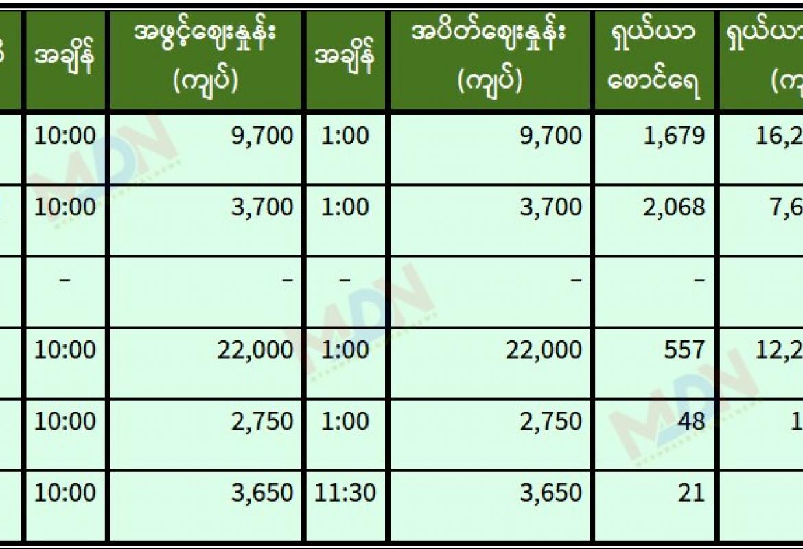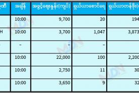 ဇန်နဝါရီလ ၁၂ ရက် ရန်ကုန်စတော့ အိတ်ချိန်းရှယ်ယာ အဖွင့်ဈေးနှုန်းများ