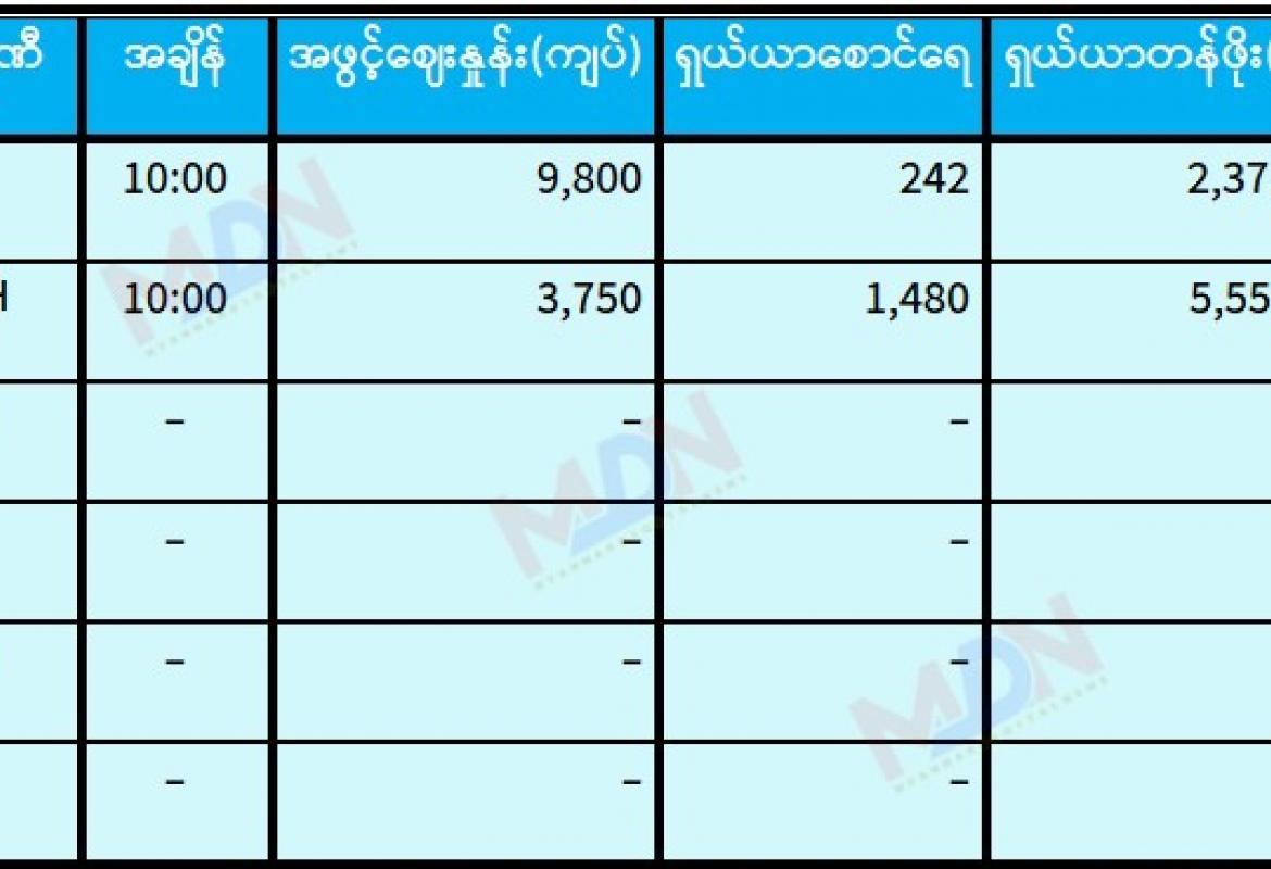 ဇန်နဝါရီ ၇ ရက် ရန်ကုန်စတော့ အိတ်ချိန်းရှယ်ယာ အပိတ်ဈေးနှုန်းများ