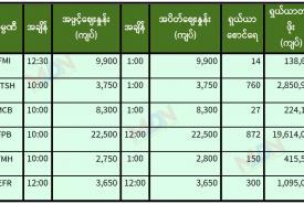 ဒီဇင်ဘာ ၂၄ ရက် ရန်ကုန်စတော့ အိတ်ချိန်းရှယ်ယာ အပိတ်ဈေးနှုန်းများ
