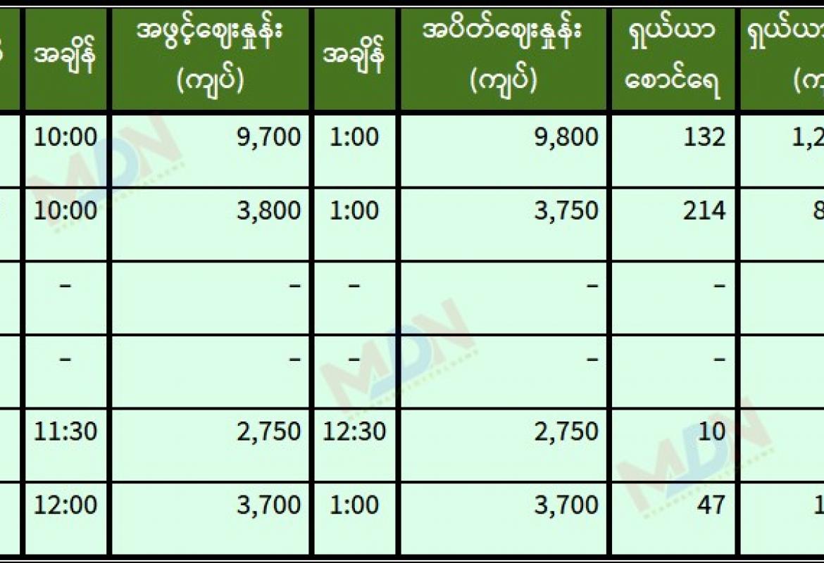 ဒီဇင်ဘာ ၂၂ ရက် ရန်ကုန်စတော့ အိတ်ချိန်းရှယ်ယာ အဖွင့်ဈေးနှုန်းများ