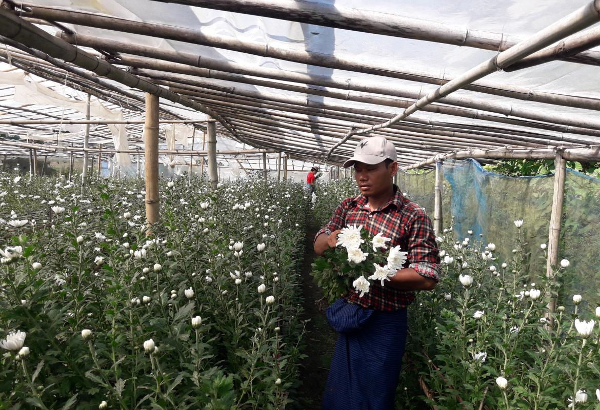 ပြွန်တန်ဆာမြို့၌ ဂန္ဓမာပန်းစိုက်ပျိုးရောင်းချသူများ မိသားစုဝင်ငွေရ၍ အဆင်ပြေ