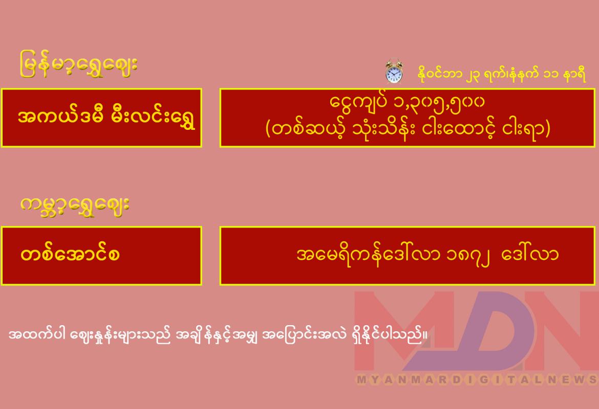 နိုဝင်ဘာ ၂၀ ရက် ရန်ကုန်စတော့ အိတ်ချိန်းရှယ်ယာ အပိတ်ဈေးနှုန်းများ
