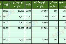 နိုဝင်ဘာ ၂၃ ရက် ရန်ကုန်စတော့ အိတ်ချိန်းရှယ်ယာ အဖွင့်ဈေးနှုန်းများ