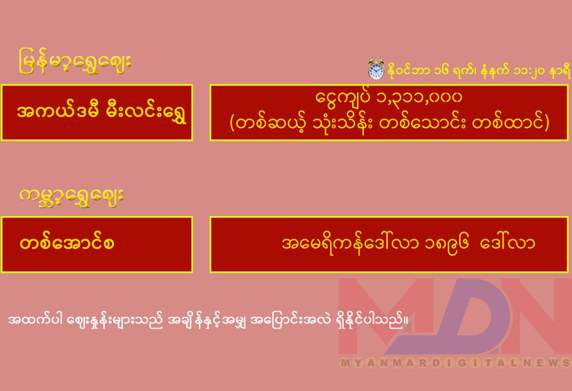 နိုဝင်ဘာ ၁၆ ရက် ရန်ကုန်စတော့ အိတ်ချိန်းရှယ်ယာ အဖွင့်ဈေးနှုန်းများ