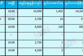 နိုဝင်ဘာ ၁၂ ရက် ရန်ကုန်စတော့ အိတ်ချိန်းရှယ်ယာ အဖွင့်ဈေးနှုန်းများ