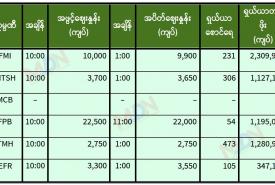 အောက်တိုဘာ ၂၈ ရက် ရန်ကုန်စတော့ အိတ်ချိန်းရှယ်ယာ အပိတ်ဈေးနှုန်းများ