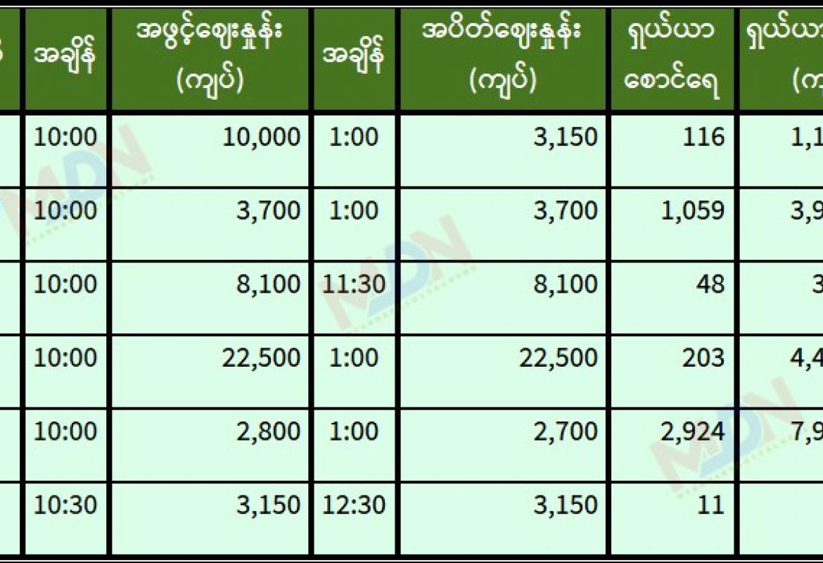 အောက်တိုဘာ ၂၂ ရက် ရန်ကုန်စတော့ အိတ်ချိန်းရှယ်ယာ အဖွင့်ဈေးနှုန်းများ