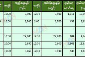 အောက်တိုဘာ ၂၀ ရက် ရန်ကုန်စတော့ အိတ်ချိန်းရှယ်ယာ အပိတ်ဈေးနှုန်းများ