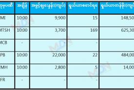 အောက်တိုဘာ ၁၆ ရက် ရန်ကုန်စတော့ အိတ်ချိန်းရှယ်ယာ အပိတ်ဈေးနှုန်းများ