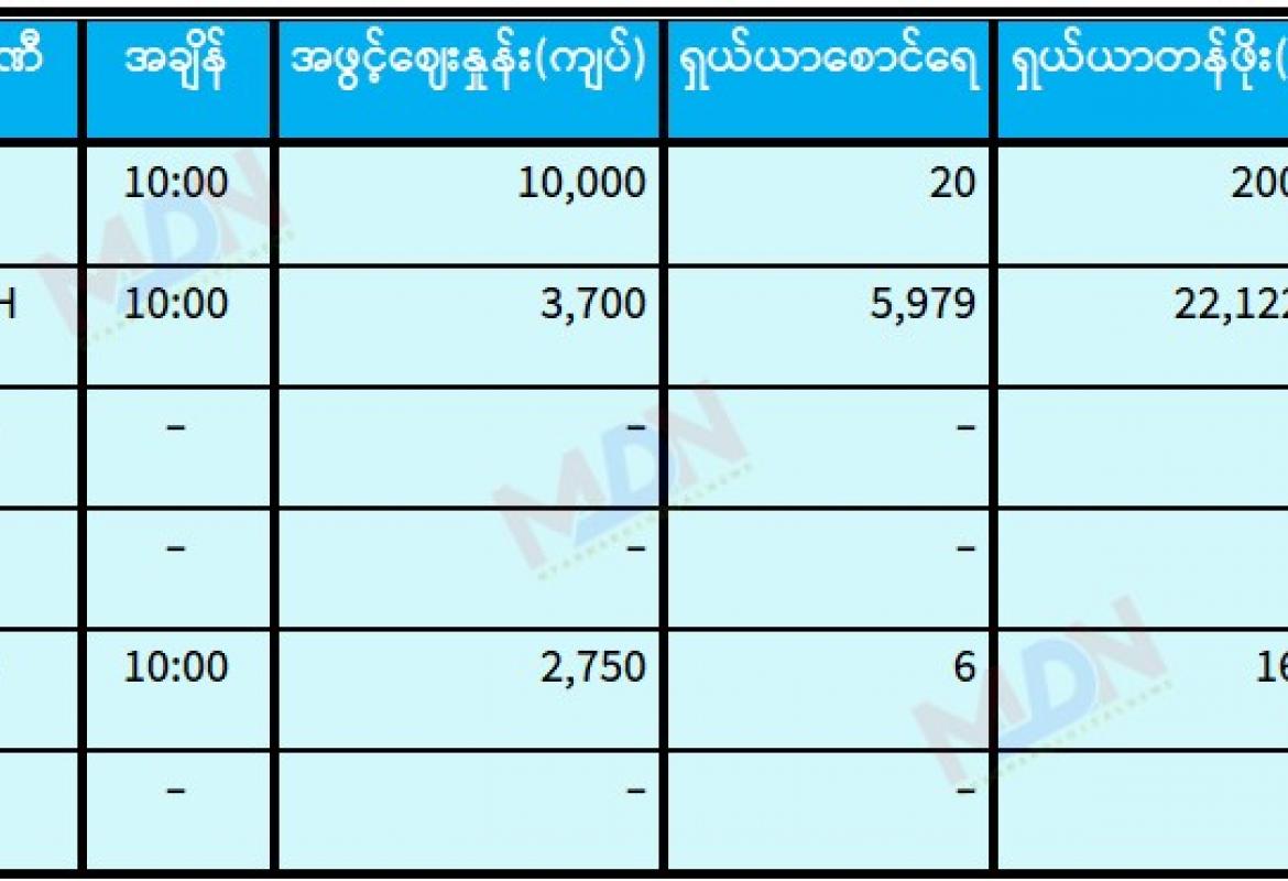 အောက်တိုဘာ ၁၅ ရက် ရန်ကုန်စတော့ အိတ်ချိန်းရှယ်ယာ အဖွင့်ဈေးနှုန်းများ