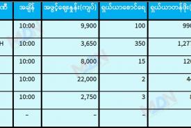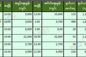 အောက်တိုဘာ ၁၄ ရက် ရန်ကုန်စတော့ အိတ်ချိန်းရှယ်ယာ အပိတ်ဈေးနှုန်းများ