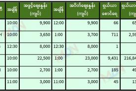 စက်တင်ဘာ ၂၅ ရက် ရန်ကုန်စတော့ အိတ်ချိန်းရှယ်ယာ အပိတ်ဈေးနှုန်းများ