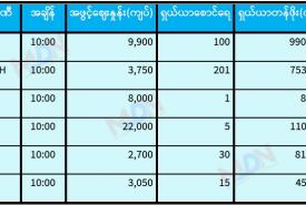 စက်တင်ဘာ ၁၄ ရက် ရန်ကုန်စတော့ အိတ်ချိန်းရှယ်ယာ အပိတ်ဈေးနှုန်းများ
