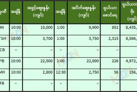 စက်တင်ဘာ ၁၅ ရက် ရန်ကုန်စတော့ အိတ်ချိန်းရှယ်ယာ အဖွင့်ဈေးနှုန်းများ