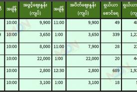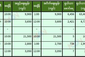 စက်တင်ဘာ ၄ ရက် ရန်ကုန်စတော့ အိတ်ချိန်းရှယ်ယာ အပိတ်ဈေးနှုန်းများ