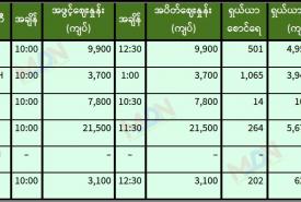 ဩဂုတ်လ ၂၈ ရက် ရန်ကုန်စတော့ အိတ်ချိန်းရှယ်ယာ အပိတ်ဈေးနှုန်းများ