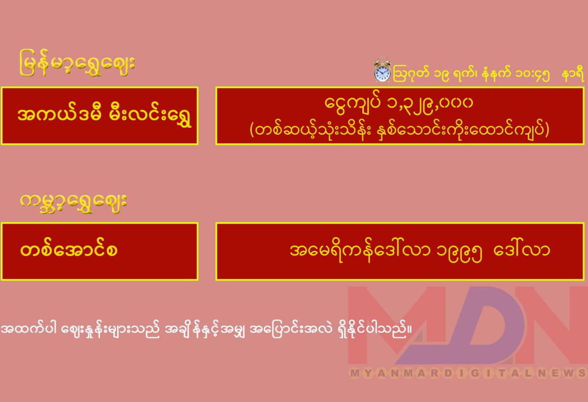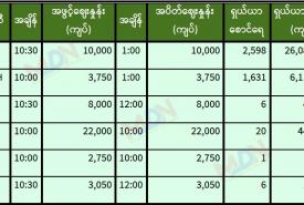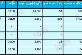ဩဂုတ်လ ၁၈ ရက် ရန်ကုန်စတော့ အိတ်ချိန်းရှယ်ယာ အပိတ်ဈေးနှုန်းများ