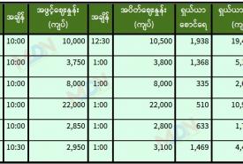 ဩဂုတ်လ ၇ ရက် ရန်ကုန်စတော့ အိတ်ချိန်းရှယ်ယာ အပိတ်ဈေးနှုန်းများ