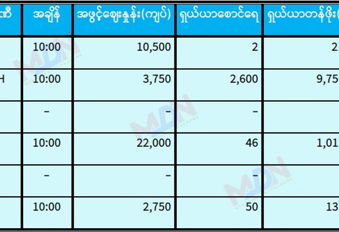 ဇူလိုင် ၂၉ ရက် ရန်ကုန်စတော့ အိတ်ချိန်းရှယ်ယာ အဖွင့်ဈေးနှုန်းများ