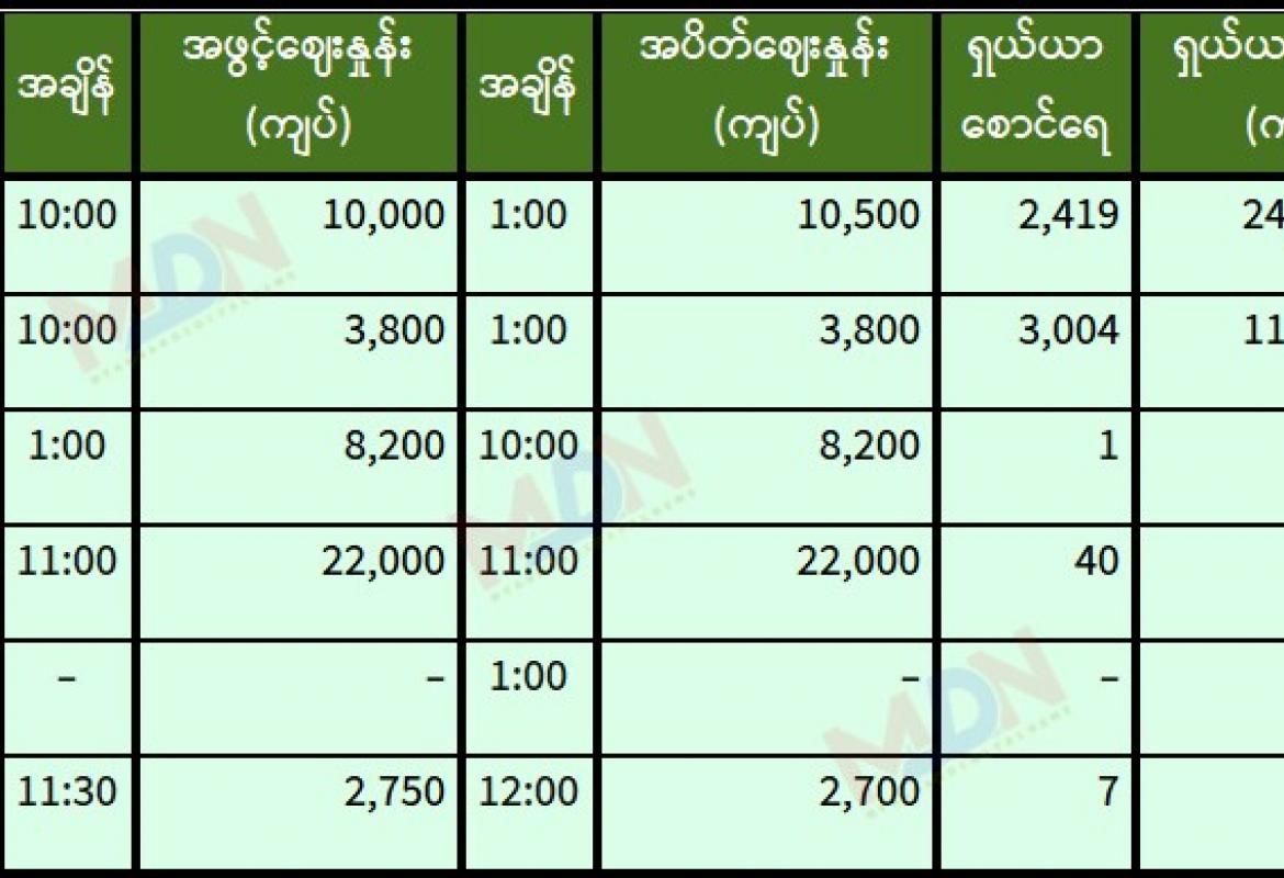 ဇူလိုင် ၂၈ ရက် ရန်ကုန်စတော့ အိတ်ချိန်းရှယ်ယာ အဖွင့်ဈေးနှုန်းများ
