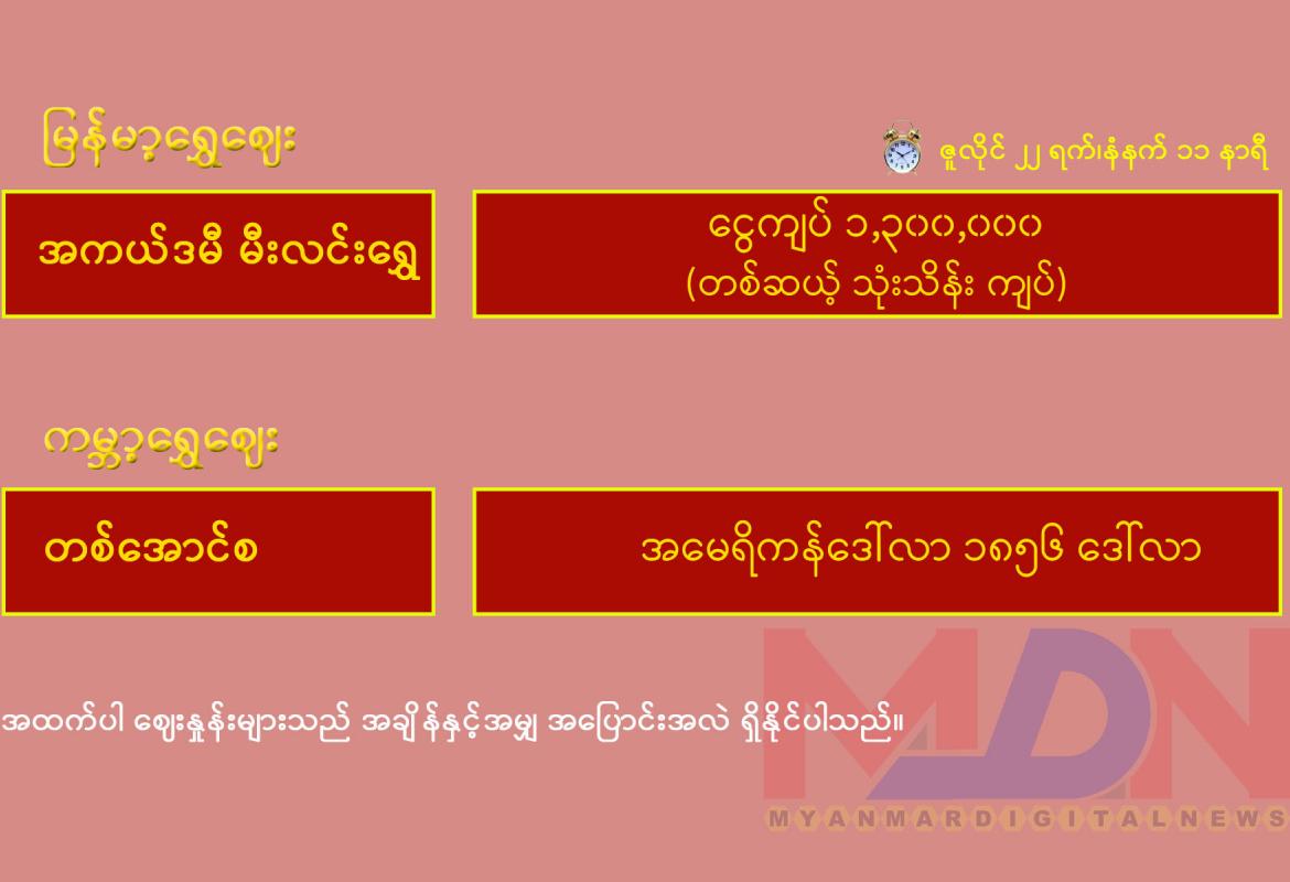 ဇူလိုင် ၂၁ ရက် မွန်းလွဲပိုင်းရန်ကုန်စတော့ အိတ်ချိန်းရှယ်ယာ ဈေးနှုန်းများ