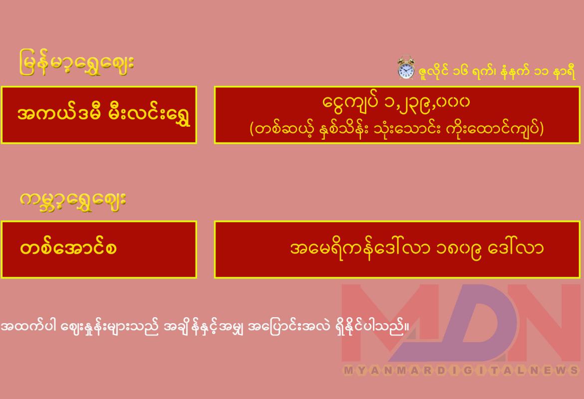 ဇူလိုင် ၁၅ ရက် မွန်းလွဲပိုင်းရန်ကုန်စတော့ အိတ်ချိန်းရှယ်ယာ ဈေးနှုန်းများ
