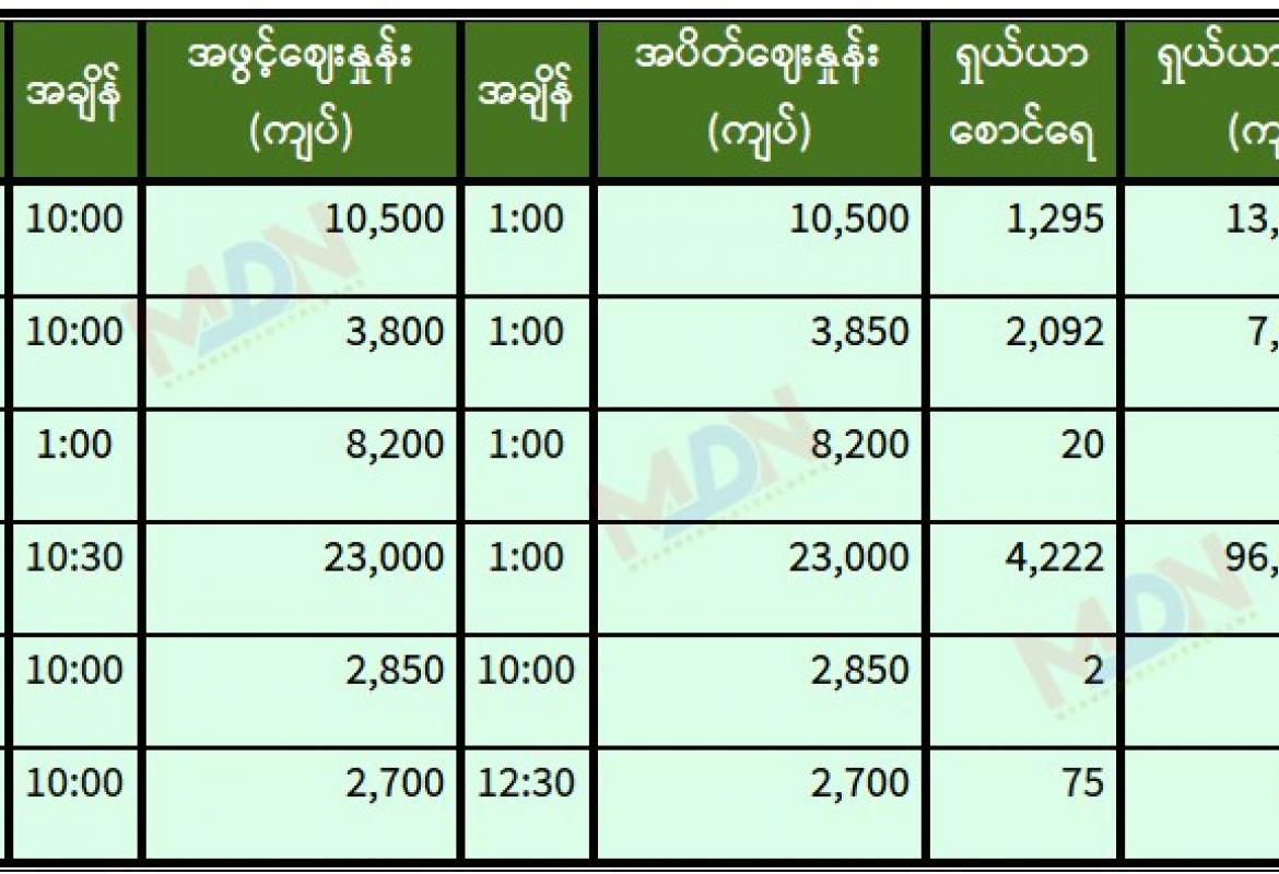 ဇူလိုင် ၁ ရက် ရန်ကုန်စတော့ အိတ်ချိန်းရှယ်ယာ အဖွင့်ဈေးနှုန်းများ